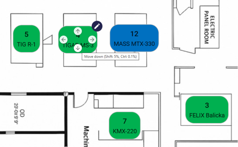 Novým přístupem k řešení vizualizace je tzv. LAYOUT BUILDER. Jedná se o low-code aplikaci, kde si sám zákazník může vytvořit jednoduchý layout výrobního prostředí, umístit karty strojů a přiřadit základní požadované informace. Tento přístup je uživatelsky velmi přívětivý a nově umožňuje velmi rychle a snadno základní pohled do výroby.